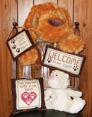 Look at these . . . a New Release and Lisa done such an awesome job stitching and finishing these for me! I love the way they turned out! May I introduce the "Paw Prints Collection". Animal and Pet Lovers will love these cute little designs. They are all easy to stitch and look great. This set is available for sale right here or of course on at my Shop! You can purchase them to be emailed in PDF format or printed and mailed!